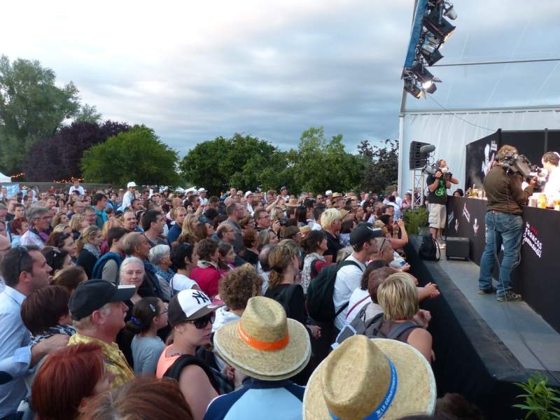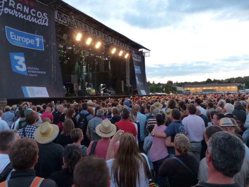 Les Francos Gourmandes, c’est la convivialité et l’hospitalité Bourguignonne. Bien que je n’avais pas d’accréditation de presse, l’organisation (merci, Marine!) m’a autorisé de prendre mon appareil photo pour que je puisse vous apporter cette impression d’une journée de joie pendant les Francos Gourmandes de Tournus. Je leur avais promis de ne pas faire des photos trop claires des artistes, mais je crois que ce reportage amateur montre quand même que tout le monde s’est bien amusé aux Francos Gourmandes. Cliquez les photos pour les agrandir. Et descendez pour voir les video’s de Louis Bertignac et Christophe Mae!